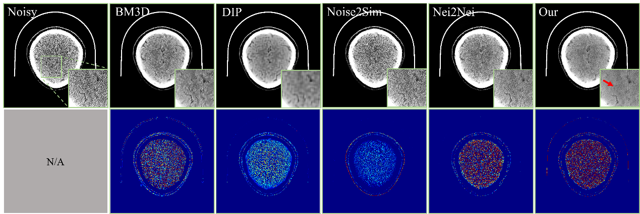 图7:临床脑部CT数据集上与其他方法的比较结果。