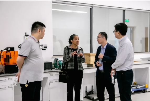 座谈会结束后,巴拉比诺博士在张超书记、岳军教授和刘杰教授的陪同下参观了学院先进制造平台,同学们正在开展基于各类3D打印、微流控芯片加工制作等工程应用训练,巴拉比诺教授在惊叹于平台设备先进之余,也充分肯定了学院在创新创业人才培养模式方面所做的尝试,这为双方下一步合作奠定了坚实的基础。