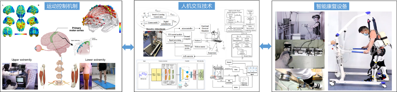 1. 运动控制机制:通过近红外(fNIRS)、脑电(EEG)、功能磁共振成像(fMRI)、(高密度)表面肌电、运动学和动力学等信号研究运动控制的生理和病理机制;