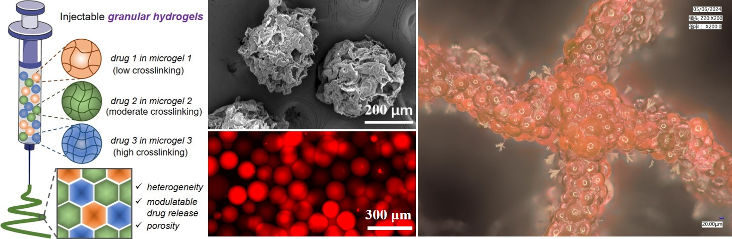 设计和构建微流控芯片平台,用于可注射、功能可模块化定制的水凝胶微球(或称微凝胶的高通量和高稳定性生产;拓展功能化微凝胶的临床应用场景,如清除毒素、缓解炎症、修复伤口、治疗慢病等。