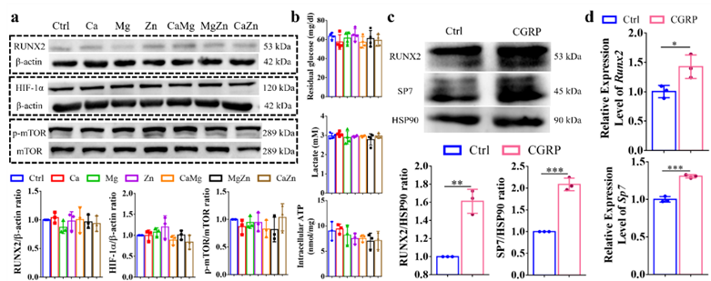 图 5 二价金属离子和 CGRP 对未分化 BMSC 的成骨和有氧糖酵解的影响。