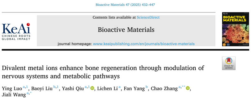 Bioactive Materials | TOMID王佳力课题组和张超课题组在二价金属离子介导神经系统活性和调控干细胞代谢途径促骨再生方面发表论文
