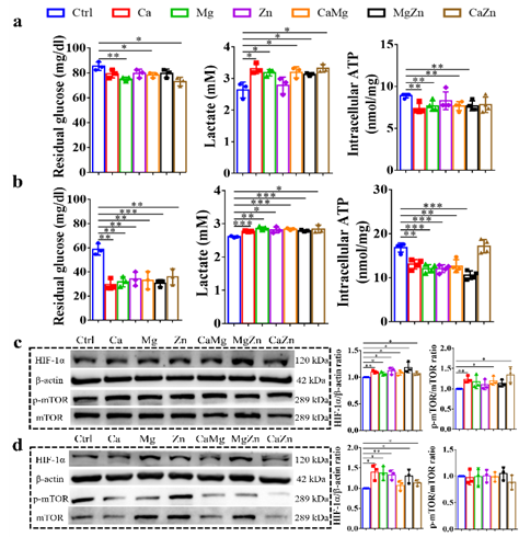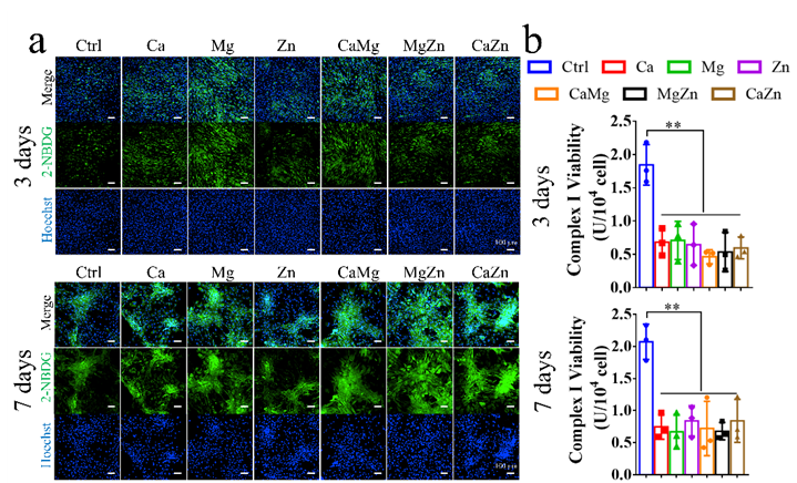 图 8 二价金属离子对分化后的 BMSC 中葡萄糖摄取和线粒体呼吸的影响。