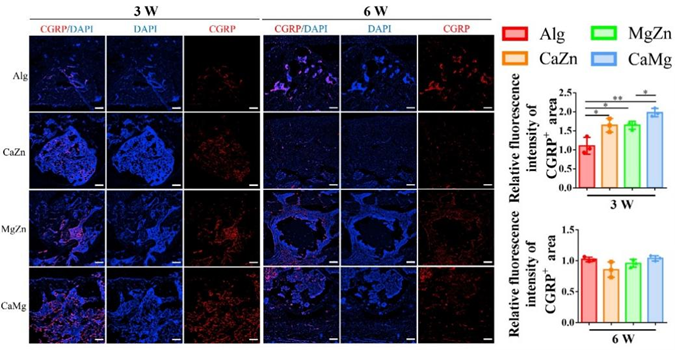 图 12 二价金属离子显著上调骨缺损中的 CGRP 阳性区域。