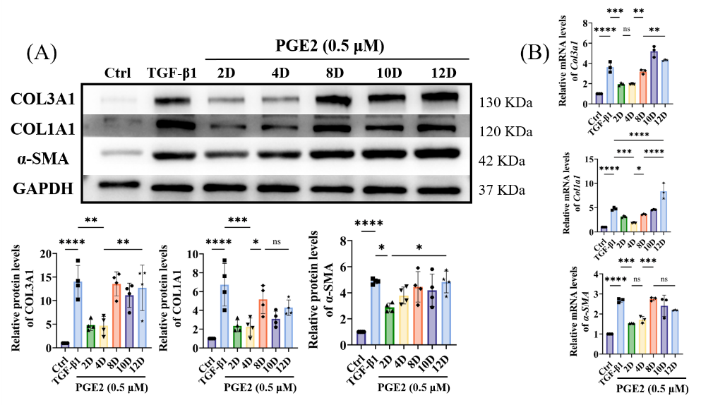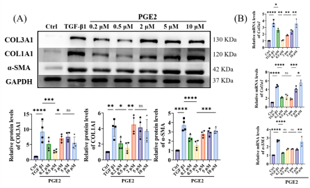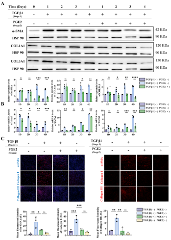 二、PGE2可逆转TGF-β1诱导的成纤维细胞向肌成纤维细胞的分化,减少瘢痕组织III型胶原的生成