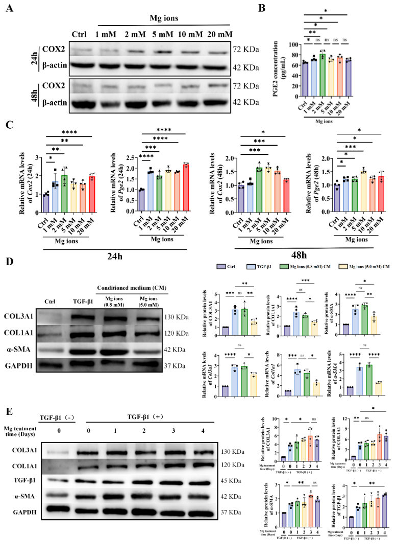 三、镁离子可刺激巨噬细胞释放PGE2以抑制TGF-β1诱导的肌腱移植纤维化