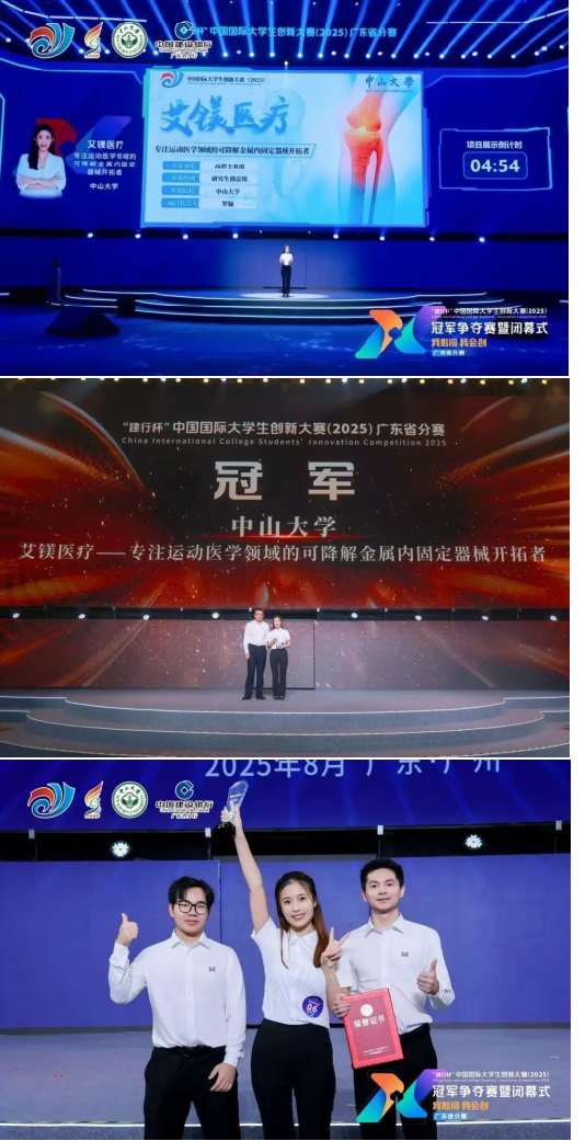 喜报:TOMID团队王佳力教授课题组博士生罗颖斩获中国国际大学生创新大赛广东省冠军——《艾镁医疗——专注运动医学领域的可降解金属内固定器械开拓者》
