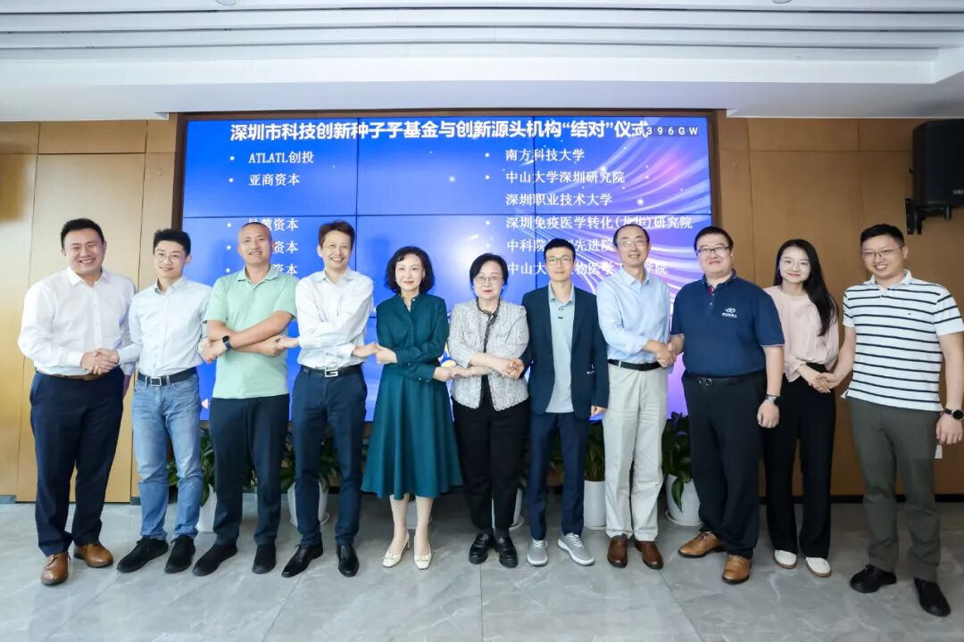 会上,深圳市科技创新局、深圳天使母基金以及深圳市新质生产力科技促进中心的相关领导,介绍了深圳市在科技成果转化、创业孵化和产业加速方面的扶持政策与实践经验。海愿资本作为深圳市科技创新种子子基金代表,与TOMID团队达成合作意向,TOMID宋剑副教授与与海愿资本合伙人赵媛媛女士参加“结对”仪式。
