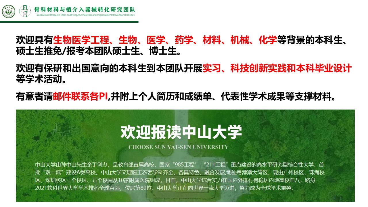 中山大学 | 骨科材料与植介入器械转化研究团队